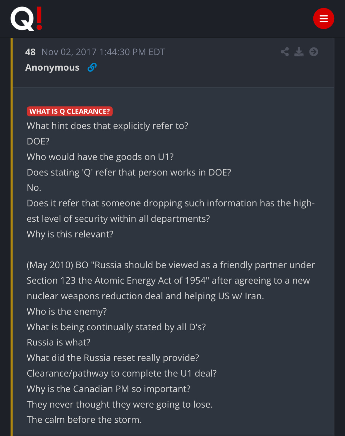 Q CLEARANCE WAS THE TELL